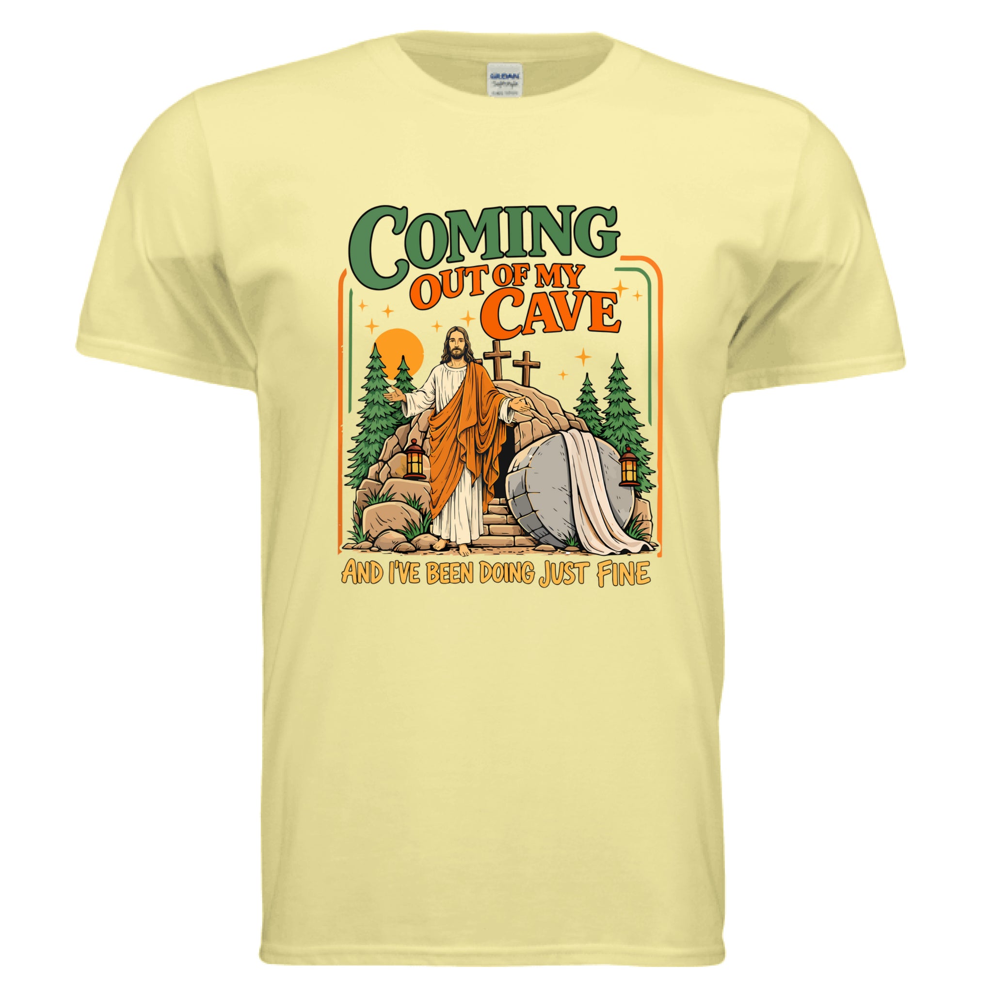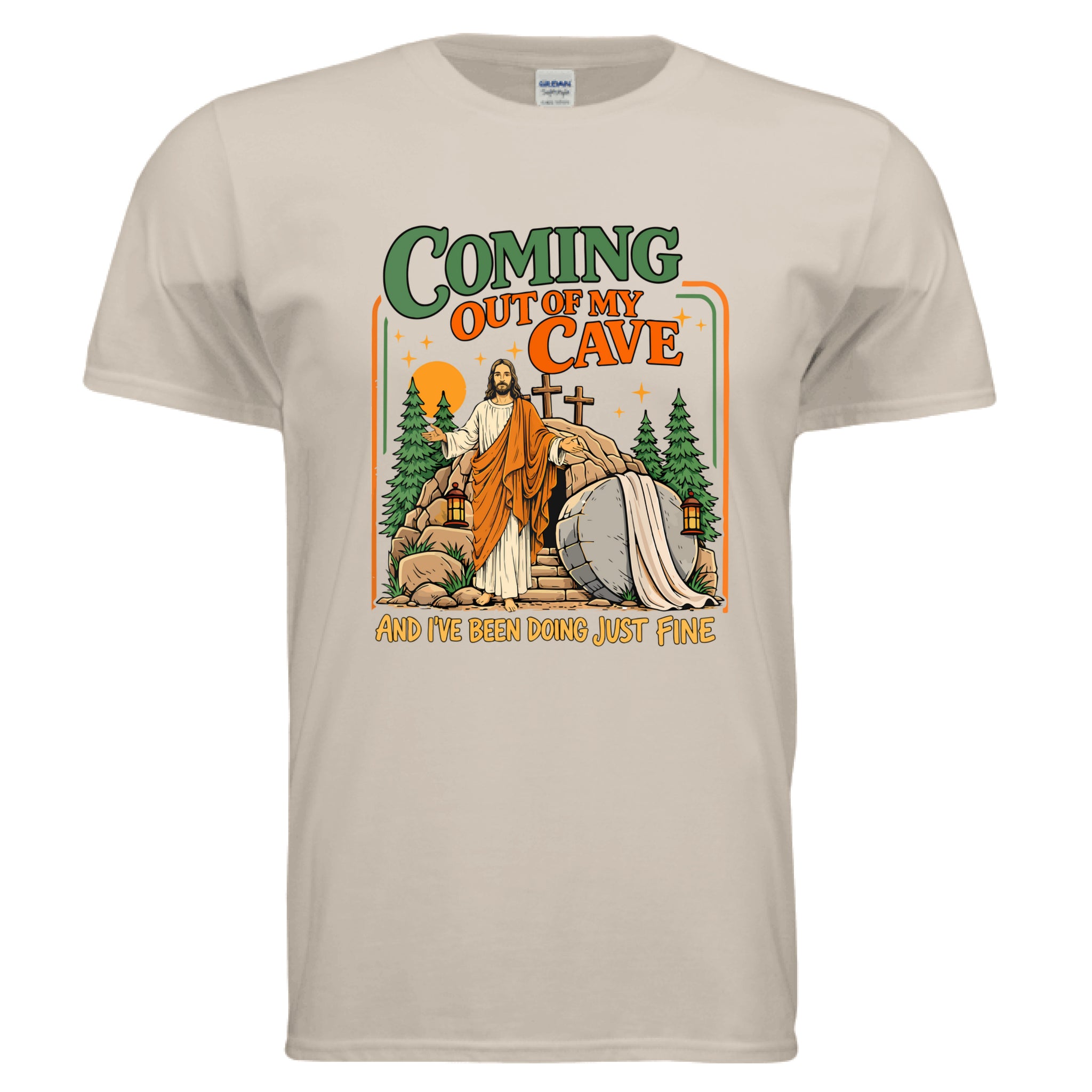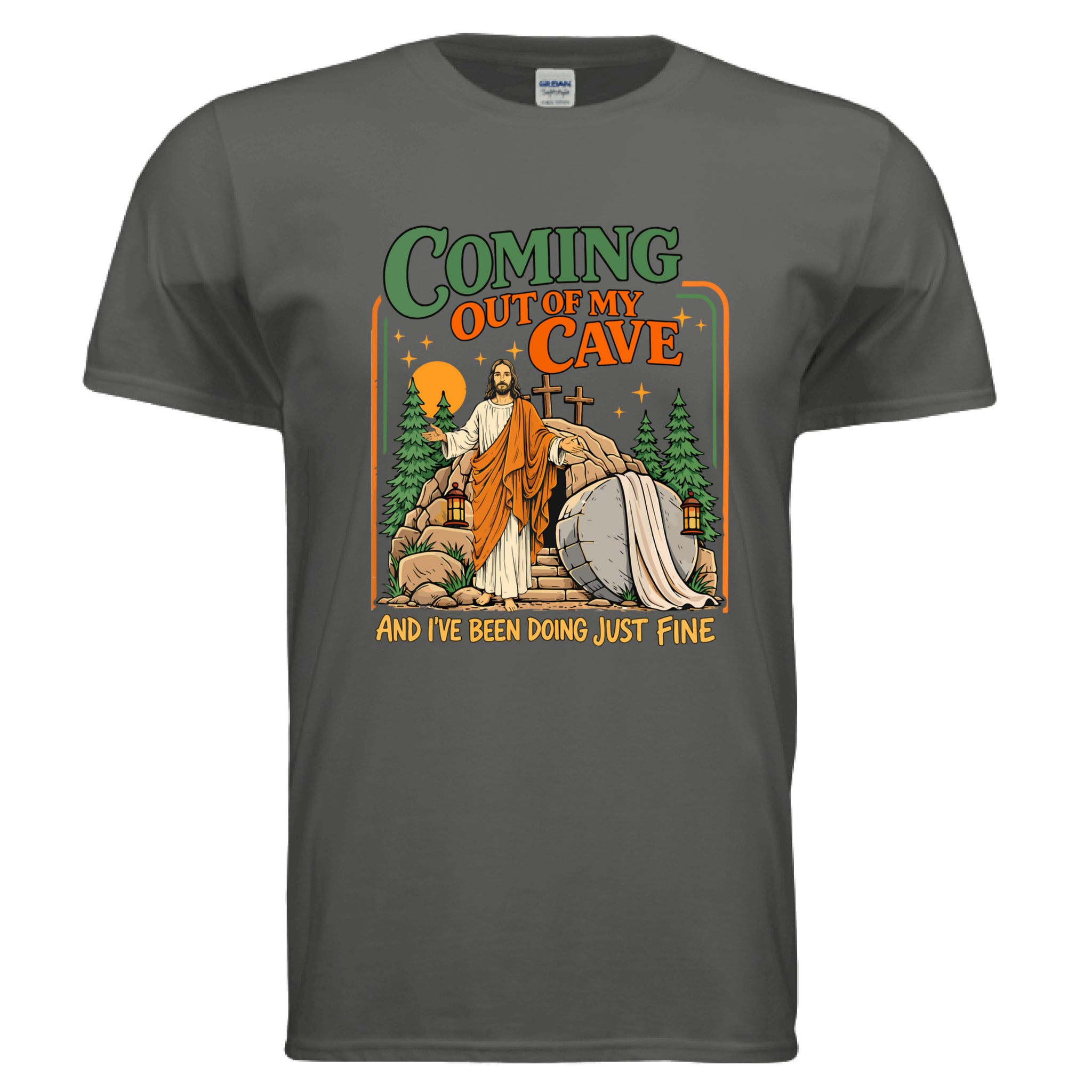 A clever twist on a classic lyric with a playful visual. This meme-style tee features an image of Jesus paired with the line “Coming out of my cave and I’m doing just fine,” blending pop culture humor with eye-catching design. Printed on a soft, breathable unisex shirt, it’s perfect for fans of witty wordplay, meme humor, and conversation-starting graphics. Great for casual wear, gifting, or anyone who appreciates smart, lighthearted parody.